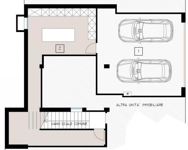 è costituita da un appartamento di soggiorno-cottura, tre camere, doppi servizi, terrazzo e giardino. Al piano interrato garage doppio in parallelo con tavernetta o cantina. Vasta la scelta dei materiali interni. Contesto di poche unità. Riscaldamento